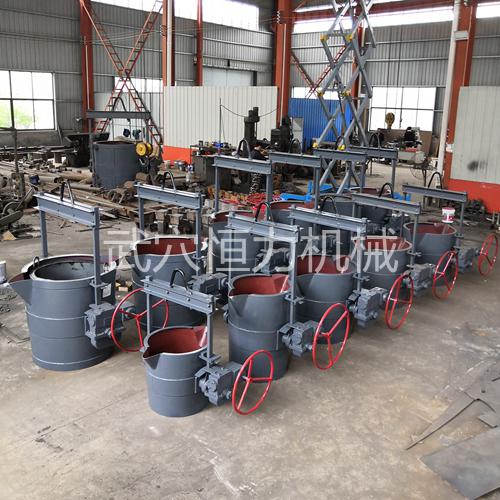 鐵水包:用于承裝鐵水后,行車懸吊澆注用。減速機(jī)采用蝸輪蝸桿傳動,轉(zhuǎn)動靈活自如,雙向回轉(zhuǎn),可逆性好。分手動和手電兩用,手動操作方便,電動為電機(jī)傳動安全省力。吊桿采用鍛件,比鋼板焊接安全可靠;包體鋼板較厚,包底采用錐度、底箍、焊筋相結(jié)合,既延長了使用壽命,又確保了安全;包體與吊桿和減速箱均裝有鉸鏈卡板,可隨時鎖定;兩包軸與吊桿間裝有調(diào)心軸承,一致性好。